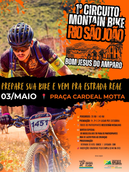 Bom Jesus do Amparo se prepara para sediar o 1º Circuito Mountain Bike Rio São João, evento esportivo que promete reunir atletas e amantes do ciclismo no dia 3 de maio, na Praça Cardeal Motta.